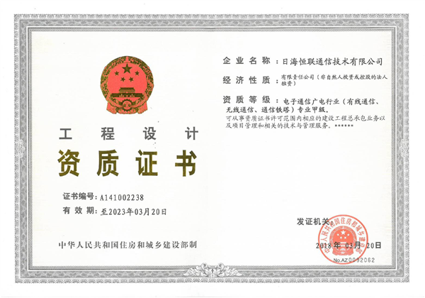 通信工程設(shè)計(jì)證書(shū)-甲級(jí)